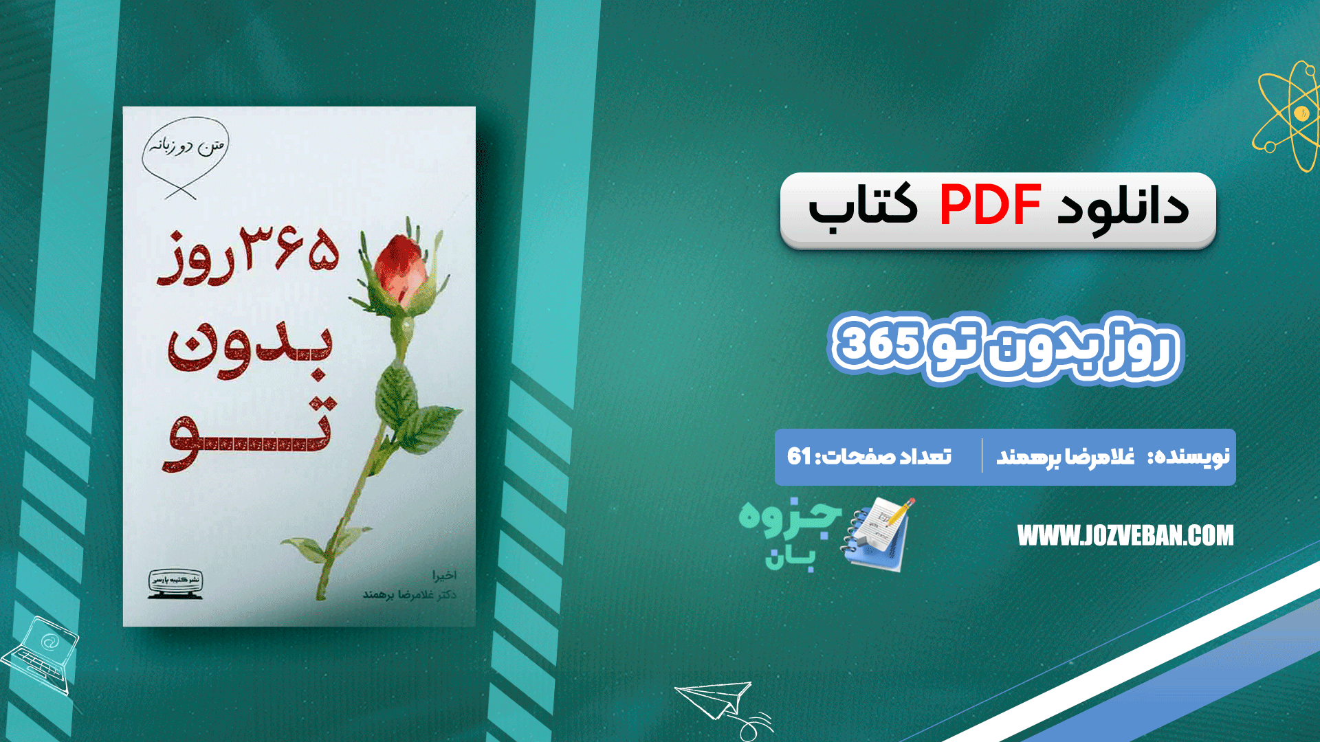 دانلود کتاب ۳۶۵ روز بدون تو غلامرضا برهمند pdf را برای شما عزیزان آماده کرده است.“۳۶۵ روز بدون تو” اثر غلامرضا برهمند، با بیانی شاعرانه و مینیمال، لحظات احساسی و تجربههای عاطفی نویسنده را به زیبایی به تصویر میکشد.