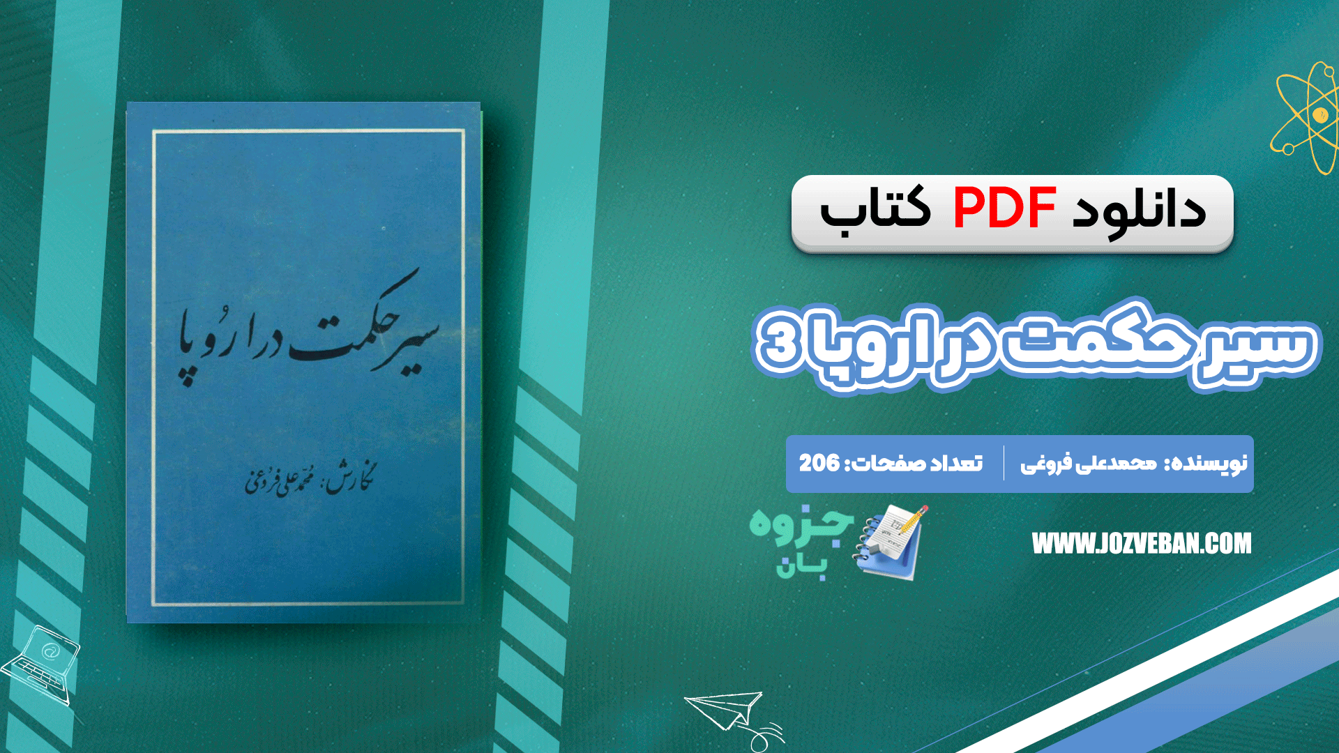 دانلود کتاب سیر حکمت در اروپا جلد ۳ محمدعلی فروغی pdf را برای شما عزیزان آماده کرده است.محمد علی فروغی، یکی از شخصیتهای برجسته تاریخ معاصر ایران، در سال ۱۲۵۶ هجری شمسی چشم به جهان گشود. او در طول زندگی خود مشاغل و مناصب مهمی را بر عهده داشت و به عنوان نخستوزیر نیز در بازهای کوتاه خدمت کرد. فروغی به عنوان یک پیشتاز در عرصه معرفی علم نوین و فلسفه غرب به ایرانیان شناخته میشود.