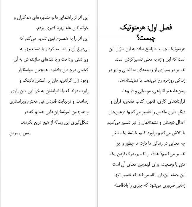 فهرست مطالب کتاب هرمنوتیک ینس یمرمن :