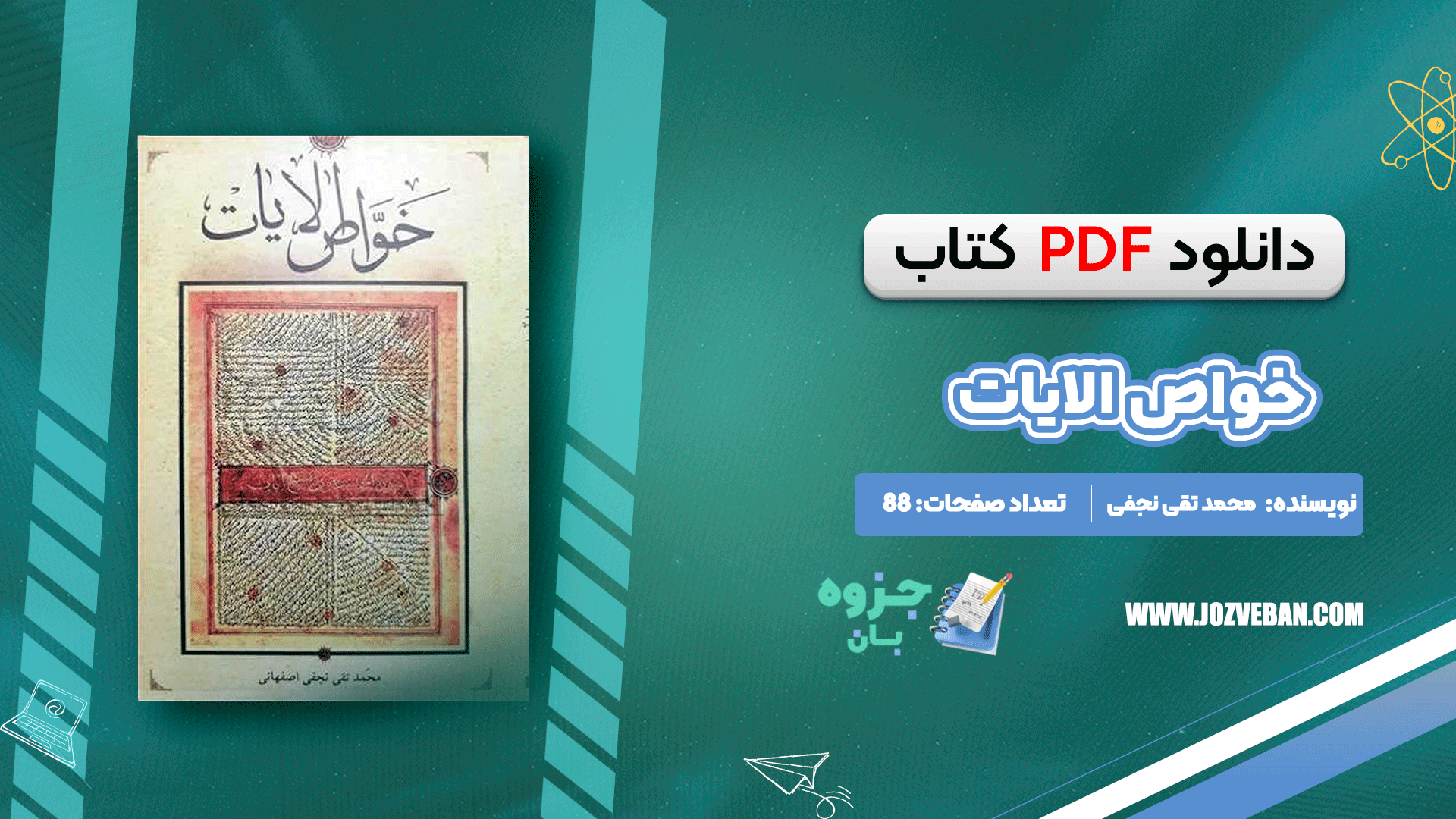 دانلود کتاب خواص الایات محمد تقی نجفی pdfدانلود کتاب خواص الایات محمد تقی نجفی pdf را برای شما عزیزان آماده کرده است. کتاب “خواص الایات” اثر عالم ربانی محمد تقی بن محمد باقر نجفی اصفهانی، یکی از دانشمندان برجسته شیعه، به بررسی خواص و اسرار آیات و سوره‌های قرآنی می‌پردازد. قرآن کتابی الهی است که در آن بسیاری از رازها پنهان است و هر یک از آیات و سوره‌های آن دارای خواصی هستند که می‌توان برای امور دنیوی و معنوی از آن‌ها بهره برد.